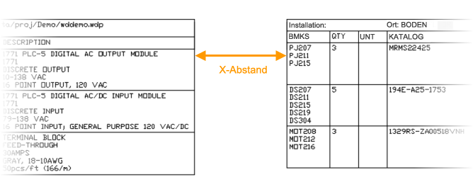• Die Tabelle ist für den gleichen Bericht vorgesehen, z. B. für Stromlaufplan-Stückliste, Sammelstücklisten-Format.