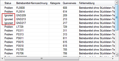 Einige Dinge sollten Sie hinsichtlich Fehlern, die als Ignoriert gekennzeichnet sind, beachten: