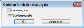 Anmerkung: Wenn die Formatdatei keine Einstellungen zur Datei- oder Tabellenausgabe enthält, sind die entsprechenden Optionen deaktiviert.