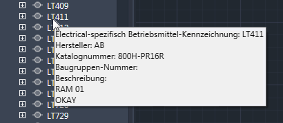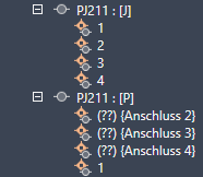 Die verschiedenen Gerätetypen werden in der Betriebsmittelstruktur unterschiedlich dargestellt. Beim Einfügen von elektrischen Betriebsmitteln wird empfohlen, eindeutige Namen (Anlagenbezeichnung, Ortsbezeichnung und Betriebsmittelkennzeichnung), Anschlüsse und Klemmennummern zu verwenden. Wenn Sie beispielsweise Kabelbezeichnungen in einer Zeichnung verwenden, die doppelte Werte für die Kabelkennzeichnung enthält, kann es in der Betriebsmittel-Strukturansicht und auf der Registerkarte Verbindungen zu unerwartetem Verhalten des Betriebsmittels kommen. Dies tritt häufiger bei Klemmen und Kabelbezeichnungen in der Ortsansicht auf.