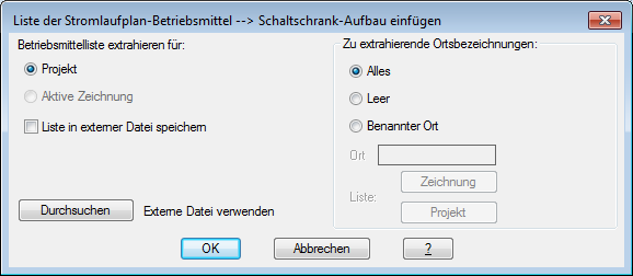Betriebsmittelliste extrahieren für: Projekt