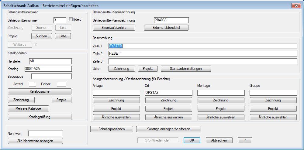 Klicken Sie im Dialogfeld Schaltschrank-Aufbau - Betriebsmittel einfügen/bearbeiten auf OK.