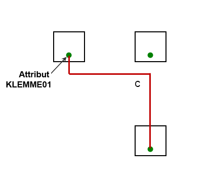 Die folgenden Diagramme zeigen, dass BLÄNGE eine gerade Abstandslinie zwischen Klemmen ist, die horizontal (Linie A) oder vertikal (B) ausgerichtet sind. Andernfalls wird bei der berechneten Länge davon ausgegangen, dass der Draht in rechtwinkligen Biegungen (Linie C) verläuft.
