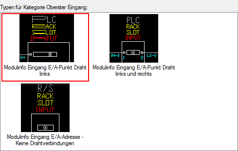 Nur die oberen Klemmen sind Symbole, die beim parametrischen SPS-Einfügen Aufforderungen akzeptieren.