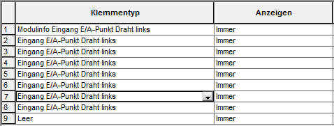Standardmäßig führt der SPS-Datenbankdatei-Editor beim Erstellen eines SPS-Moduls so viele leere Klemmentypfelder auf, wie Klemmen im Dialogfeld Neues Modul definiert sind.