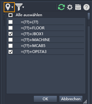 Anmerkung: Wenn das AutoCAD Electrical toolset-Projekt nicht mit einem Inventor-Projekt verknüpft ist, entsprechen die Schaltflächen Ortsansicht nicht dem angezeigten Bild.
