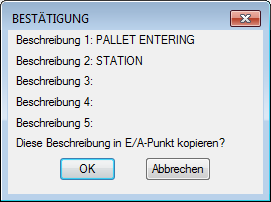Wählen Sie die markierte Beschreibung, PALLET INSIDE STATION, aus, und klicken Sie auf OK.