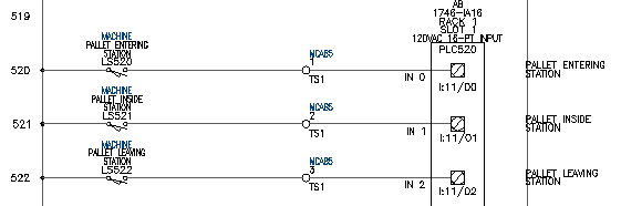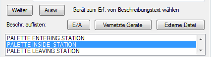 Wählen Sie für die erste E/A-Adresse (I:11/00) die erste Beschreibung (PALLET ENTERING STATION) in der extrahierten Geräteliste aus.