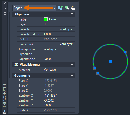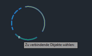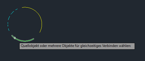 Es können mehrere Bogen ausgewählt werden, auch wenn sie sich nicht berühren. Voraussetzung dafür ist, dass sie denselben Mittelpunkt und Radius haben.