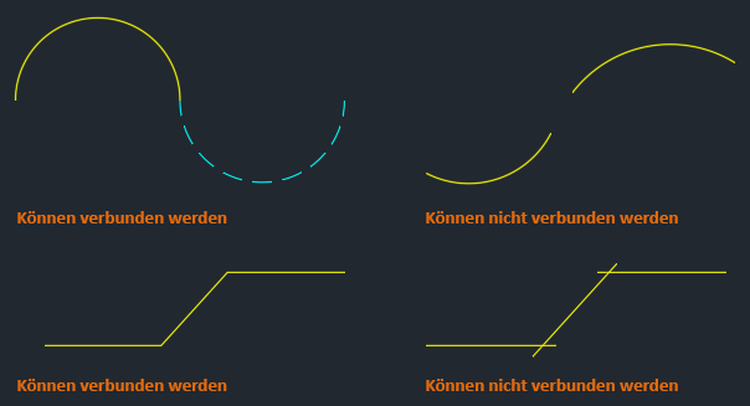 Im Folgenden werden einige häufig verwendete Befehle in Bezug auf das Verbinden von linearen und gekrümmten Objekten beschrieben.