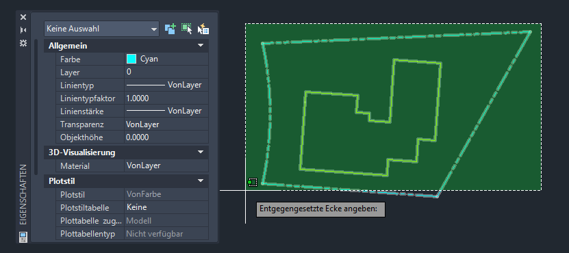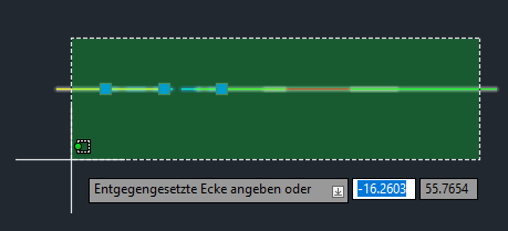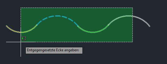 Versuchen wir es noch einmal. Diesmal wähle ich alle Linien in der Zeichnung mithilfe eines Kreuzen-Fensters aus.