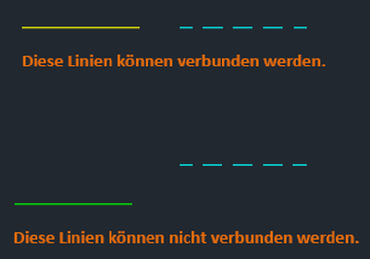 Es können mehrere Linien ausgewählt werden. Wenn sich die Objekte nicht am Ende berühren oder nicht kollinear sind, ignoriert VERBINDEN die Objekte.