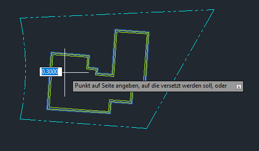 Durch Auswahl der geschlossenen Polylinie und Verwendung von VERSETZ konnte ich eine neue Polylinie innerhalb der ursprünglichen Polylinie erstellen.