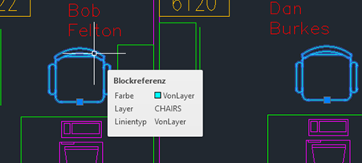 Angenommen, Sie möchten den Layer FURNITURE zum aktuellen Layer machen. Natürlich können Sie auch einfach die Layerliste öffnen und blättern, bis Sie den Layer FURNITURE gefunden haben. Stattdessen verwenden wir den Befehl Als aktuell festlegen, um den aktuellen Layer schnell zu ändern.