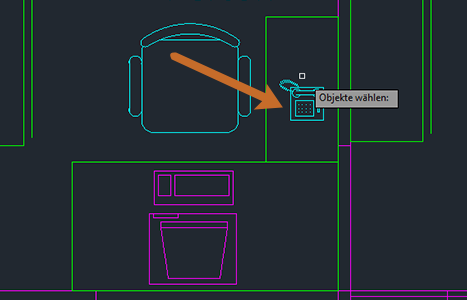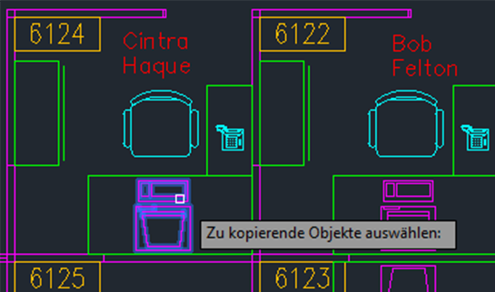 Wir sperren vorübergehend den Layer für die Arbeitsbereiche und frieren den Layer für die Möbel, sodass wir die gewünschten Objekte löschen können. Dann machen wir die Layeraktionen rückgängig.