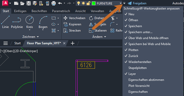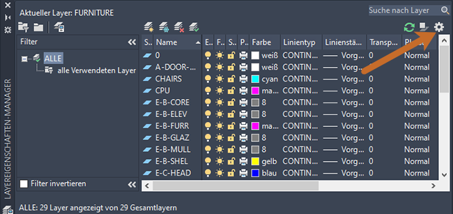 Der Layer FURNITURE ist jetzt der aktuelle Layer.
