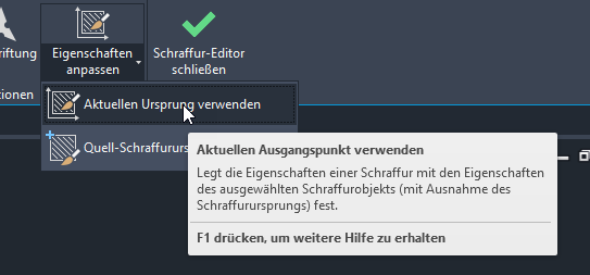 Dies wird als Quellobjekt betrachtet. Die Eigenschaften werden in die Schraffur kopiert, die bearbeitet wird.