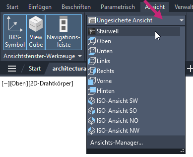 Der vorherige Maßstab des Ansichtsfensters wird zusammen mit der Sichtbarkeit der Beschriftungsobjekte mit einem Beschriftungsmaßstab von 1/2"=1'-0" wiederhergestellt.