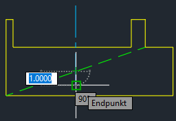 Jetzt wird die Mittellinie über die Kante der Geometrie hinaus verlängert.