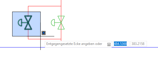 Anmerkung: Sie können das Ventilsymbol und die Abdeckungsobjekte gruppieren oder das Abdeckungsobjekt zum Ventilblock hinzufügen, um die Arbeit mit den Objekten zu erleichtern. Weitere Informationen zum Gruppieren von Objekten finden Sie unter Haben Sie dies schon versucht: Gruppen.