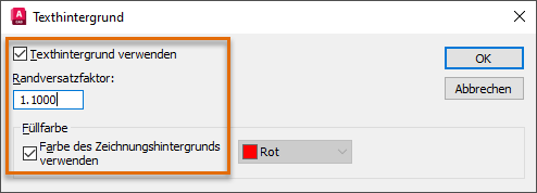 Anmerkung: Bemaßungen unterstützen keine Texthintergründe.