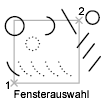Wählt alle Objekte aus, die sich vollständig innerhalb eines durch zwei Punkte definierten Rechtecks befinden. Wenn Sie die Ecken von links nach rechts angeben, wird eine Fenster-Auswahl erstellt. (Bei der Angabe der Ecken von rechts nach links erstellen Sie eine Kreuzen-Auswahl.)