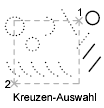 Wählt Objekte innerhalb eines durch zwei Punkte festgelegten Bereichs sowie alle Objekte, die den Bereich kreuzen. Eine Kreuzen-Auswahl wird gestrichelt oder auf andere Weise hervorgehoben dargestellt, sodass sie sich von einer Fenster-Auswahl unterscheidet.