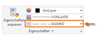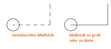 Wenn Sie den globalen Skalierfaktor ändern, ändert sich die Darstellung aller Linientypen in der Zeichnung.