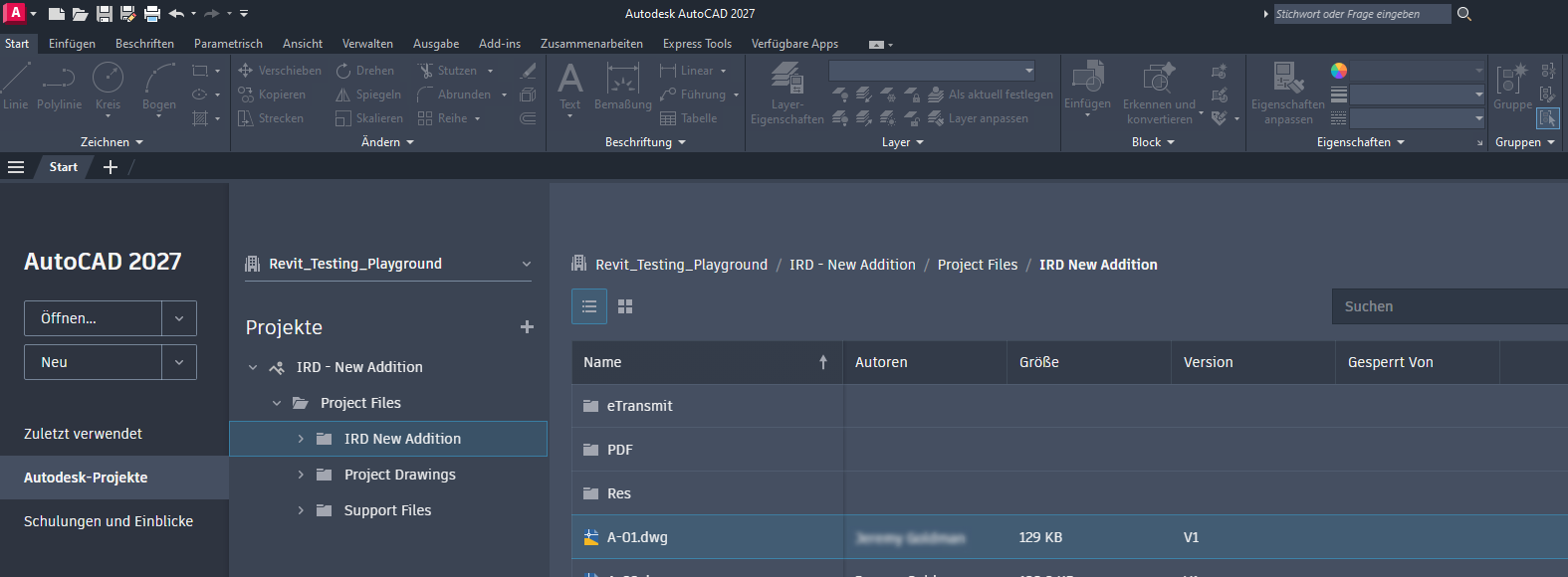 - Navigieren Sie zu einer Zeichnung im Projekt, und öffnen Sie sie.