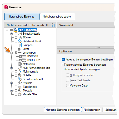 So bereinigen Sie nicht verwendete Linientypdefinitionen