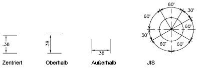 Steuert die Ausrichtung (waagerecht oder an einer Linie) des Maßtextes innerhalb oder außerhalb der Hilfslinien. (Systemvariablen DIMTIH und DIMTOH)