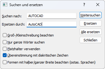 Dialogfeld Suchen und Ersetzen - MTEXT