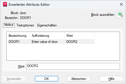 Der Name des Blocks, dessen Attribute Sie bearbeiten.