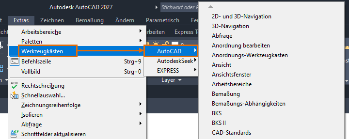 Die Menüoption ist möglicherweise nicht in allen spezialisierten Toolsets verfügbar.