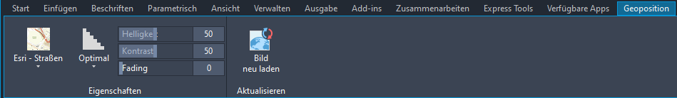 2. Passen Sie in der Gruppe Eigenschaften die Einstellungen Helligkeit, Kontrast und Fading an, bis sich die Zeichnungsgeometrie klar vom Kartenbild abhebt.