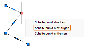 Der Scheitelpunkt wird der Polylinie hinzugefügt, die sich vom ausgewählten Endgriff aus erstreckt.