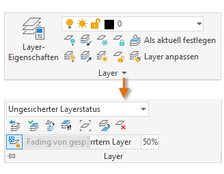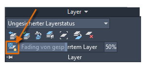 So können Sie den Fading-Grad schnell auf 0 % und wieder auf die vorige Intensität einstellen. Wenn Sie nicht mit der Multifunktionsleiste arbeiten, verwenden Sie den Befehl LAYISO.