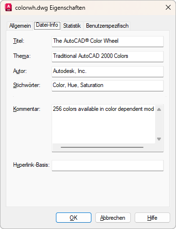 Registerkarte Datei-Info (Dialogfeld Zeichnungseigenschaften)