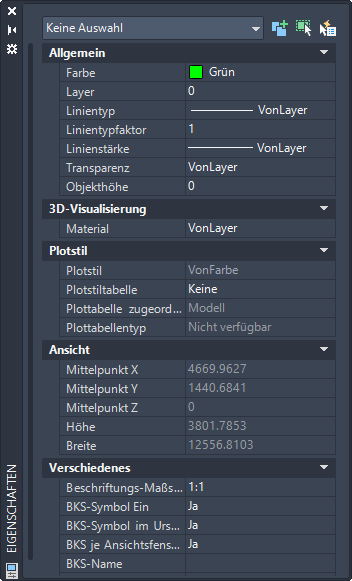 - Wenn keine Objekte ausgewählt sind, können Sie die aktuellen Eigenschaften anzeigen und so ändern, dass sie für alle neuen Objekte verwendet werden.