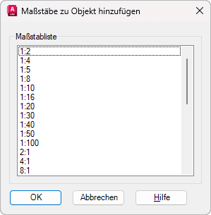 Zeigt die Liste der Maßstäbe an, die dem ausgewählten Beschriftungsobjekt hinzugefügt werden können.