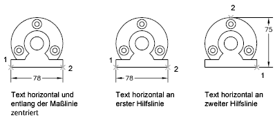 Unabhängig davon, ob Text innerhalb oder außerhalb der Hilfslinien liegt, können Sie festlegen, dass er an der Maßlinie ausgerichtet wird oder waagerecht bleibt. Die folgenden Abbildungen zeigen zwei Kombinationen dieser Optionen.