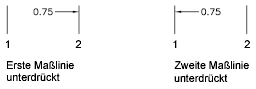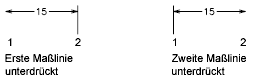 Unterdrückt die Anzeige der Maßlinien. Mit Bem.-Linie 1 wird die erste Maßlinie unterdrückt, mit Bem.-Linie 2 die zweite Maßlinie. (Systemvariablen DIMSD1 und DIMSD2)