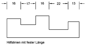 Ermöglicht das Festlegen von Hilfslinien mit fester Länge. (Systemvariable DIMFXLON)