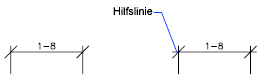 Unterdrückt die Anzeige der Hilfslinien. Mit Hilfslinie 1 unterdrücken Sie die erste Hilfslinie, mit Hilfslinie 2 die zweite Hilfslinie. (Systemvariablen DIMSE1 und DIMSE2)