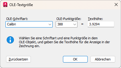Dialogfeld OLE-Textgröße
