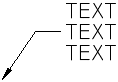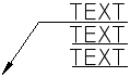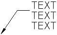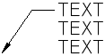 Sie können beschriftungsbezogene Multi-Führungslinien mit Text als Inhalt erstellen. Der Textinhalt wird gemäß der angegebenen Maßstabsdarstellung skaliert. Die Einstellungen für Breite, Ausrichtung, Zuordnung und Rotation für Textinhalt können je nach der angegebenen Maßstabsdarstellung variieren. Eigentlicher Textinhalt kann nicht mit der Maßstabsdarstellung geändert werden.