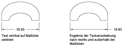 Sie können den Text an eine neue Position oder zurück an seine durch den aktuellen Bemaßungsstil definierte Position verschieben. In der folgenden Abbildung ist die Ausgangsposition horizontal oberhalb der Maßlinie zentriert.