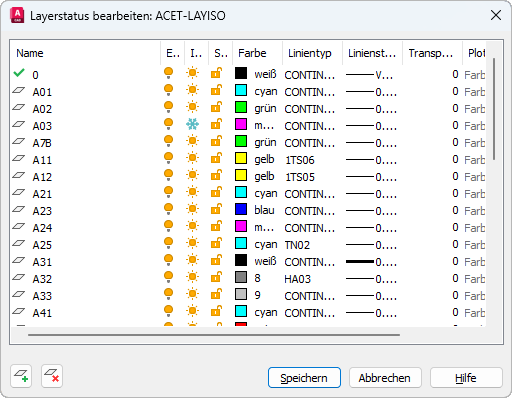Layer (Befehl), Layerstatus-Manager Finden:
