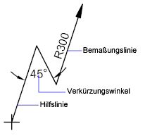 Verkürzte Radiusbemaßung