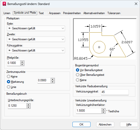 Steuert das Aussehen der Pfeilspitzen für die Bemaßung.